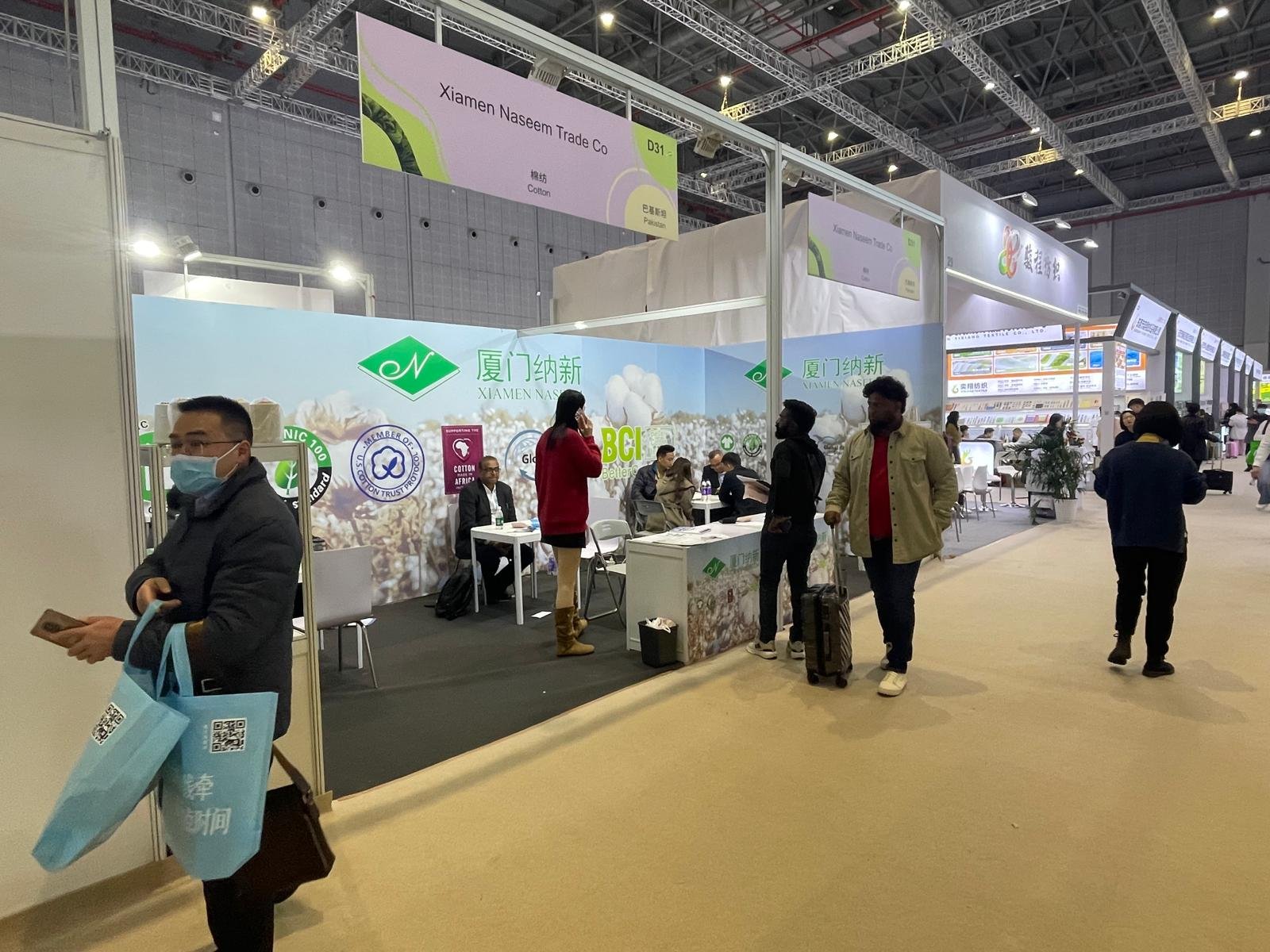Picture Caption – Xiamen Naseem Trade Co booth at Yarn Expo Spring 2026 in Shanghai, engaging with global buyers.